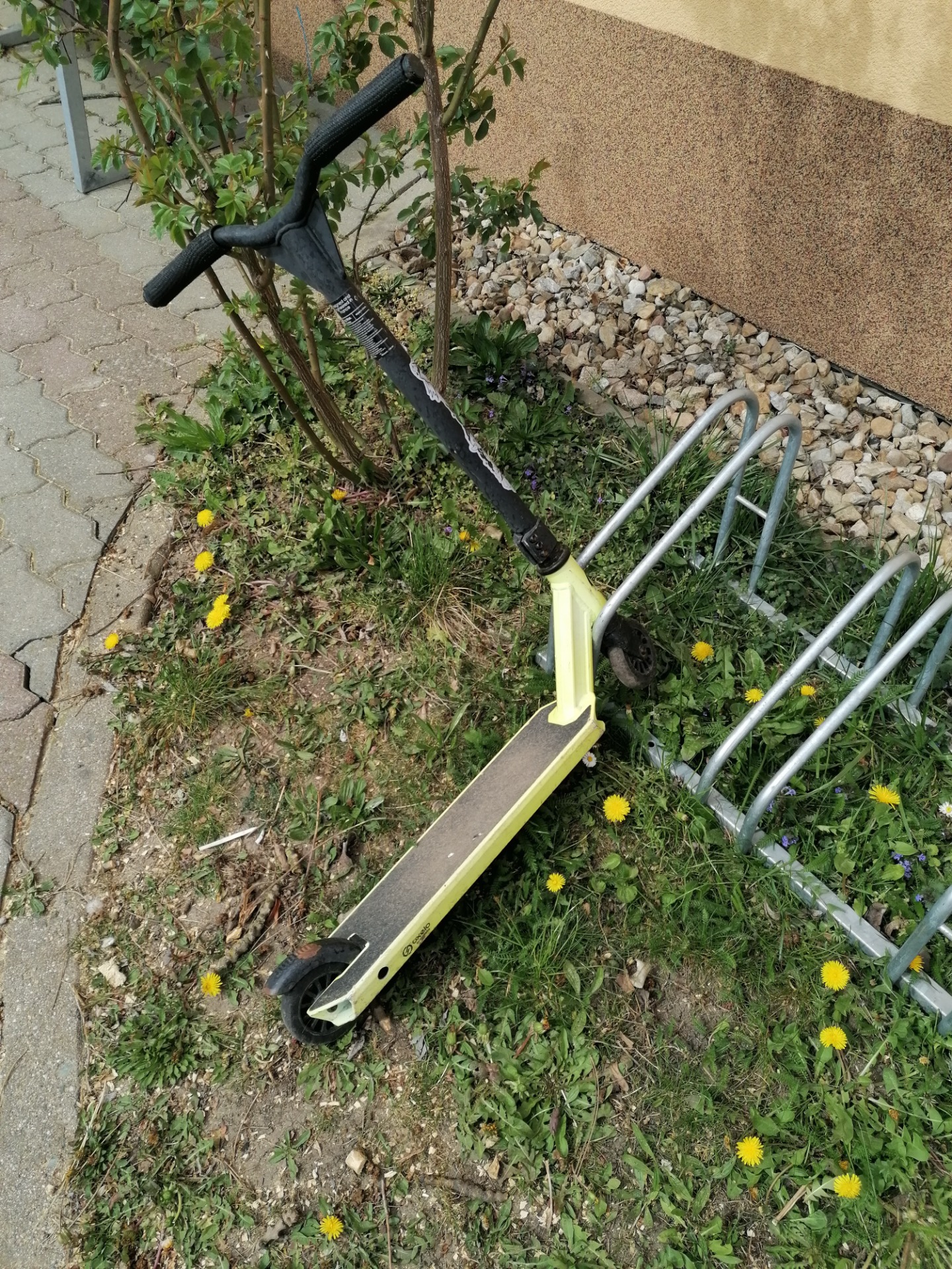 Již několik měsíců je ve stojanu u základní školy zaparkovaná koloběžka (viz obrázek), ke které se nikdo nehlásí. Pokud víte, komu patří, připomeňte mu prosím, ať si ji u školy vyzvedne.